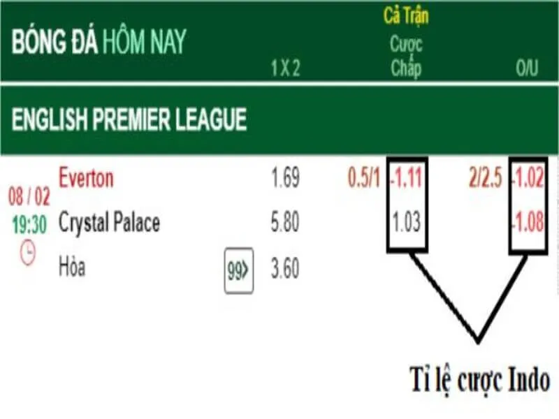 Tỷ lệ cược Indo trong nhà cái